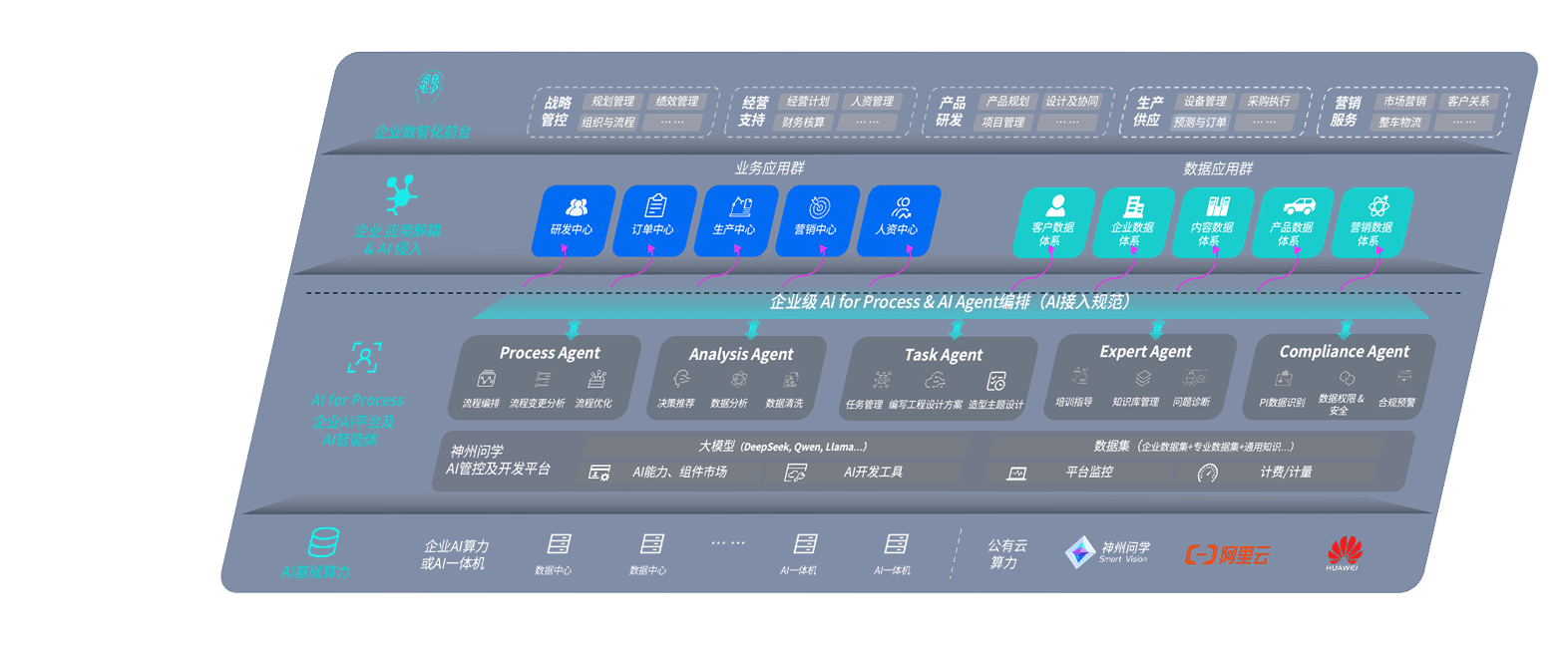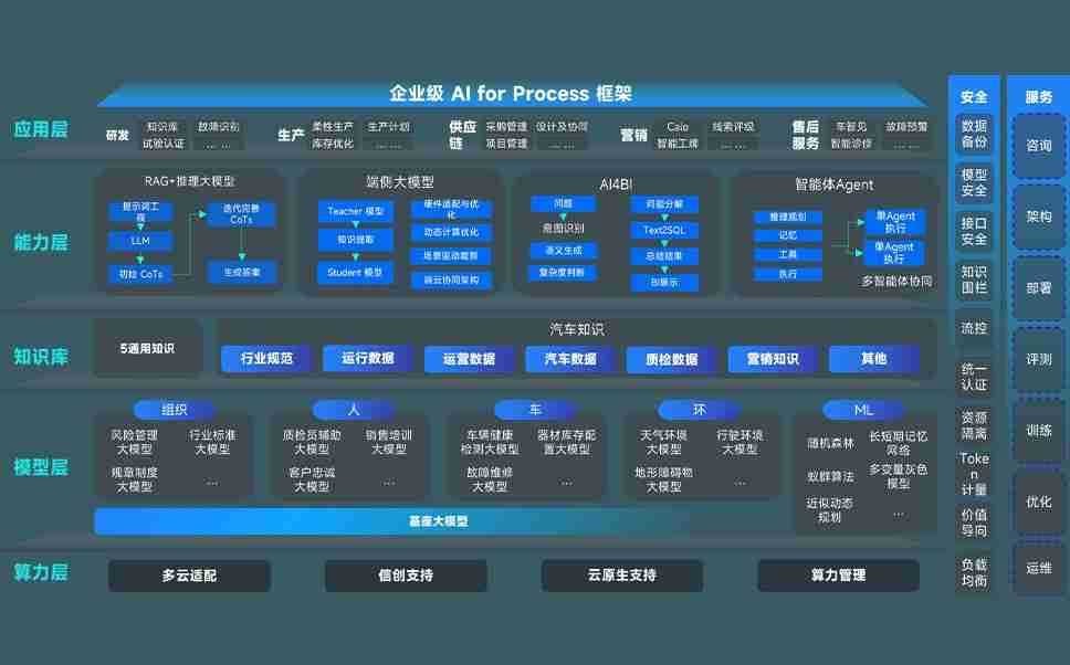 端到端的一站式AI工作空间深度融合了从企业战略规划到日常经营的全流程业务板块,,,定向解决车企内部领域多、、、、部门多、、、、链条长、、、场景碎片化等难题,,支持车企快速构建以AI为核心的生产力写作体系,,,,实现任务执行与AI能力的无缝集成与交互